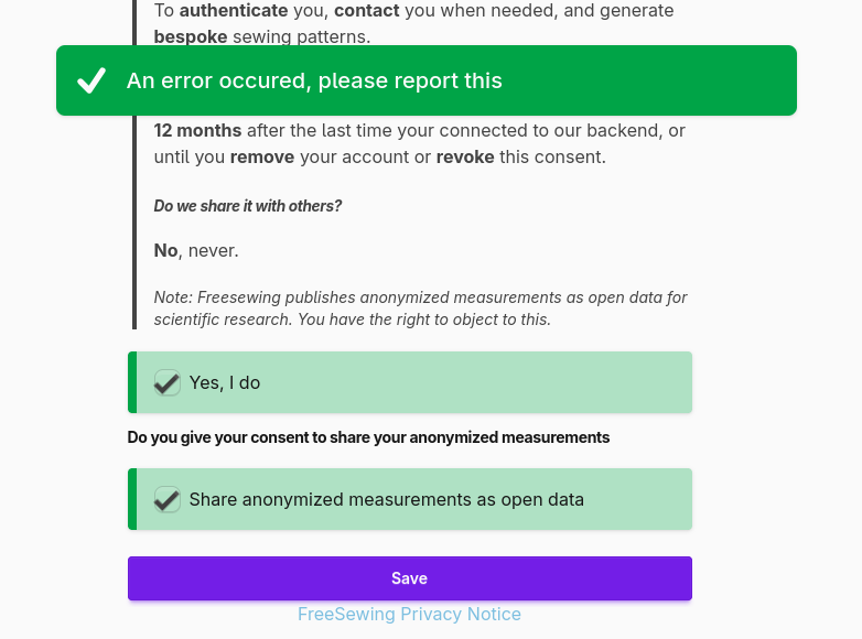 ”Do you give your consent to share your anonymized measurements”