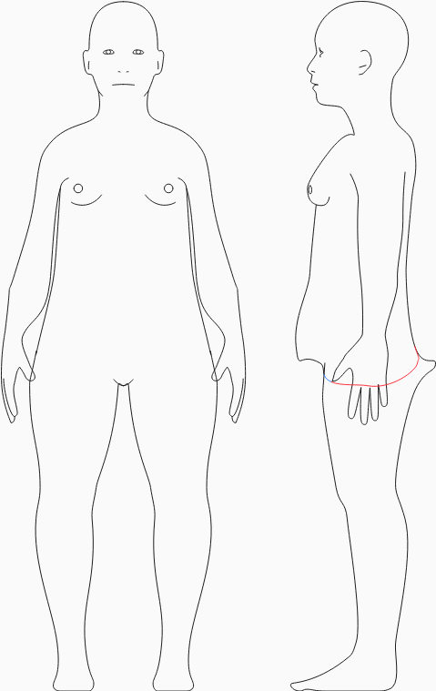 This looks relatively good, but I of course don’t know how you look like in real life. We have no “hips back” measurement, so the software doesn’t really know how the distribution is between a belly and your “upper bum” and the estimations it does might not work well for all body types.