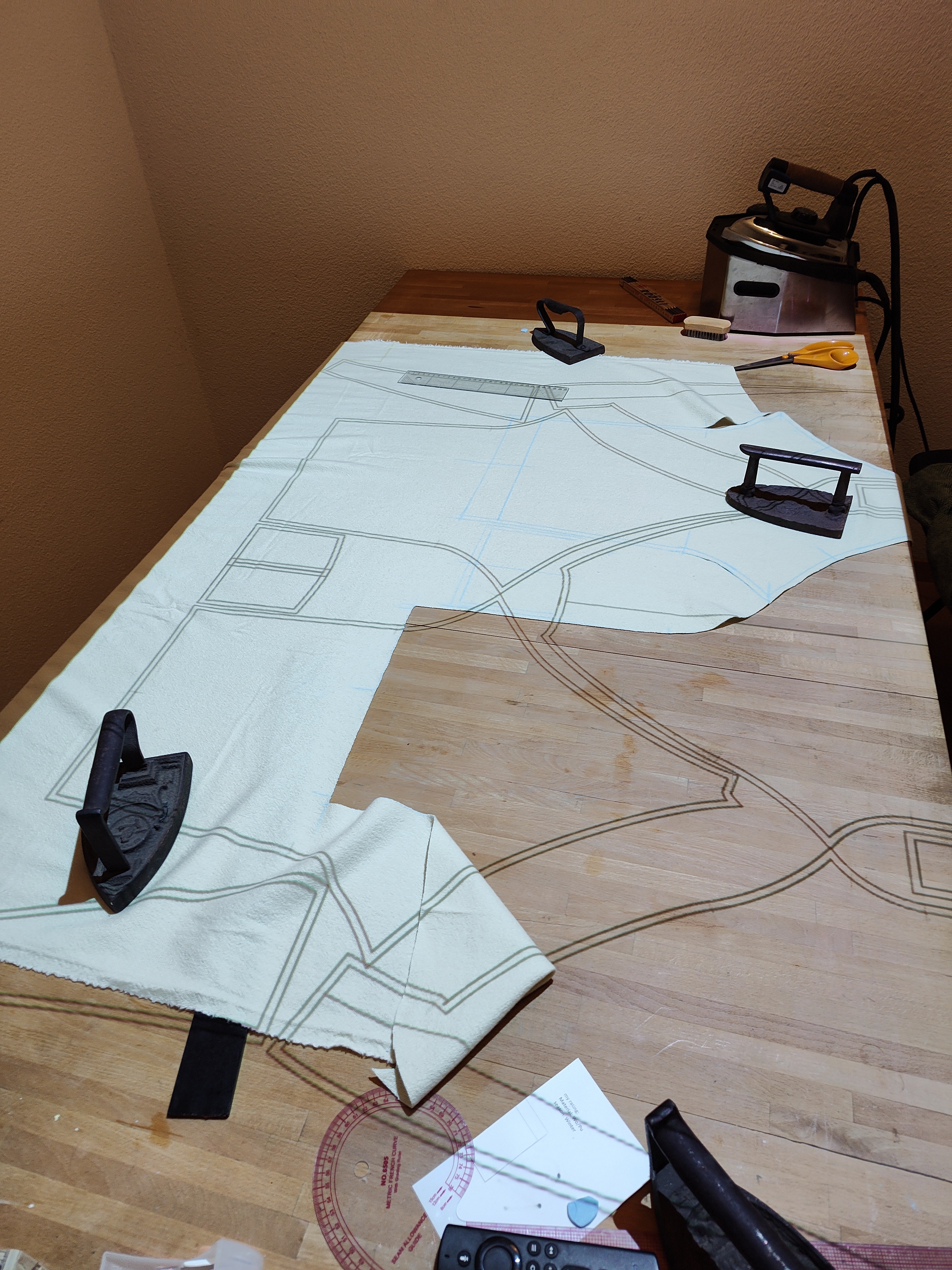 To avoid paper waste, I was also thinking of using a projector. But is it accurate in the same way? I mean, it will require quite some work to mark out all the cuts, seams, markers, etc., and during this time, the fabric must not move. If pinned to the paper, it seems like this would be much easier. Is that so? Do you curse more with the projector method?