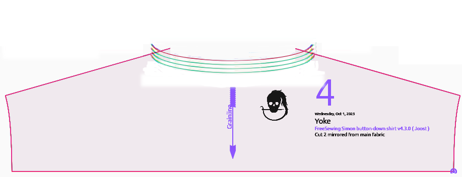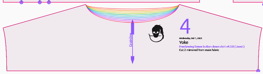 Another problem, maybe related, that I want to tackle later, is that the top of the shoulder does not correspond with the shoulder seam. The neck point is good, it’s the highest point of the shoulders. But at the arm opening, the top seam is way back compared to the real top of the shoulder, by maybe 4cm – quite a bit! Unfortunately, I cannot shift that point (there’s a bug that I reported that causes the sleeve to change when this point moves), and I also think that this might not be the right tweak, because I do not want to shift the yoke to the front for stylistic reasons, but I want to get that point to the highest point of the shoulder to make it fit right – this might indeed mean that the arm opening may be in the wrong place. But I don’t know.